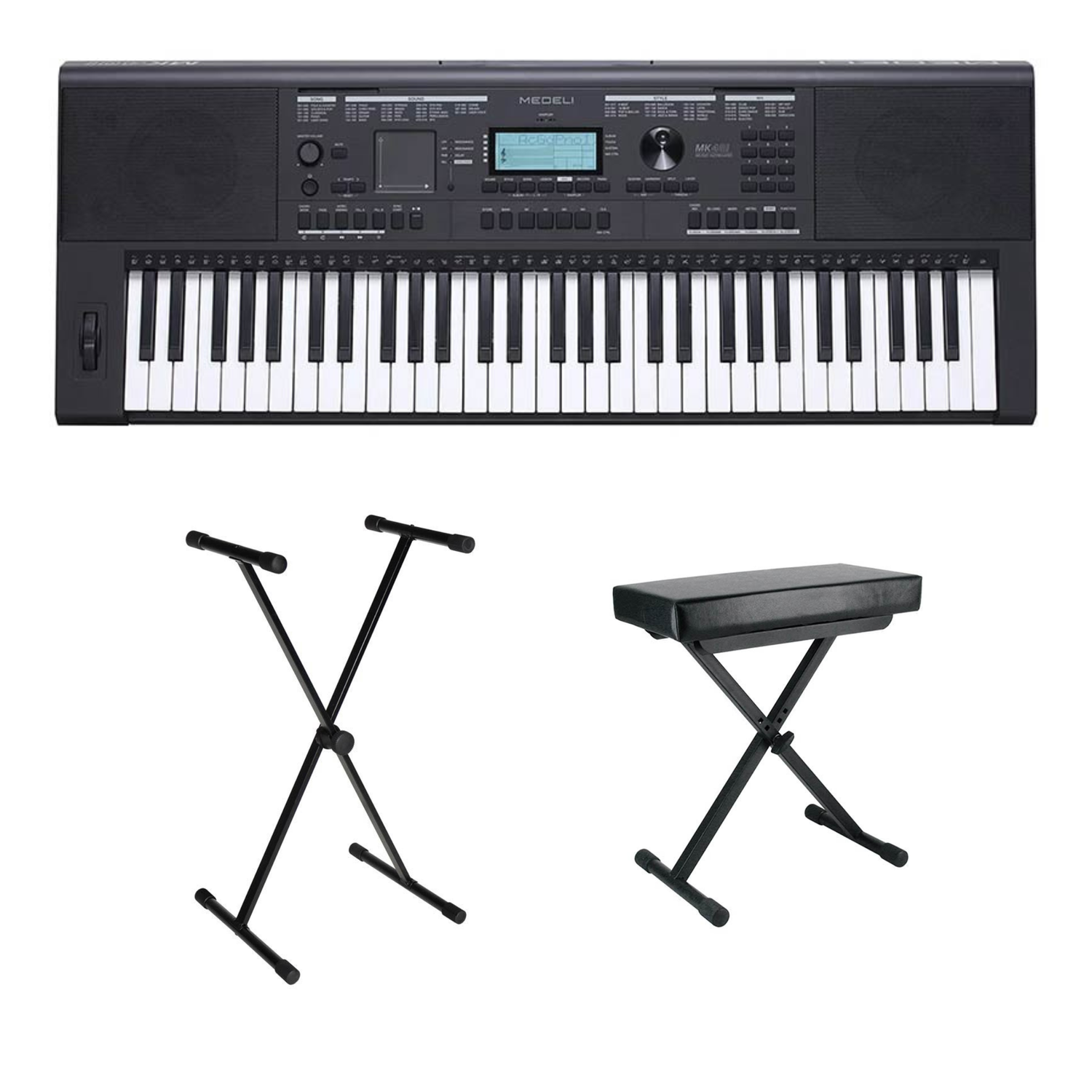 Medeli MK401 Millenium Series – Set with stand & stool, 61 velocity-sensitive keys, 600 sounds