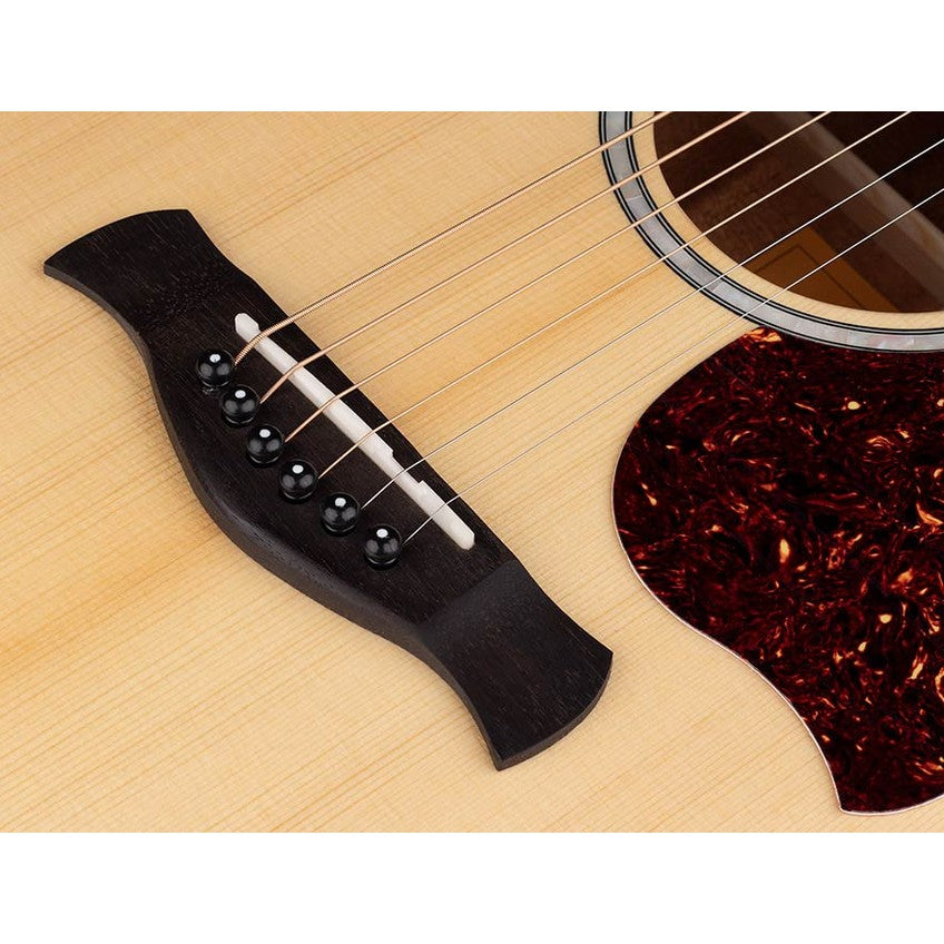 This natural gloss finish emphasizes the beautiful woodwork and is further refined by luxurious details like flame maple binding and abalone purfling and rosette . The purpleheart fingerboard feels firm and responsive, while the mahogany neck and beveled fret edges contribute to optimal playing comfort. The gold-plated die-cast tuners offer precise tuning stability, and paired with D'Addario EXP16 strings, this guitar is immediately ready for any musical adventure.