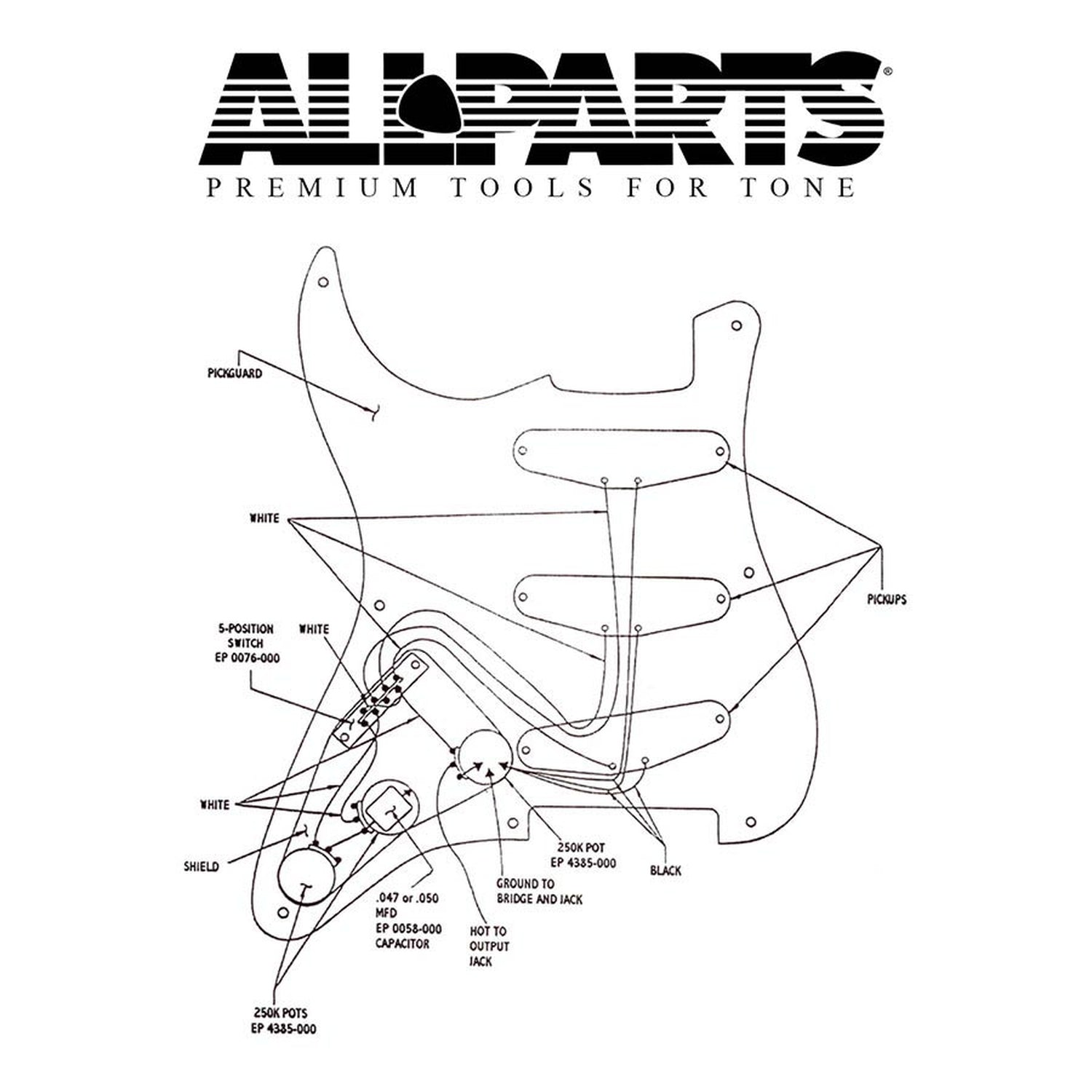 Allparts EP4120000 wiring kit for Stratocaster Wiring kit for Stratocaster® and similar style guitars. Contains the following parts: