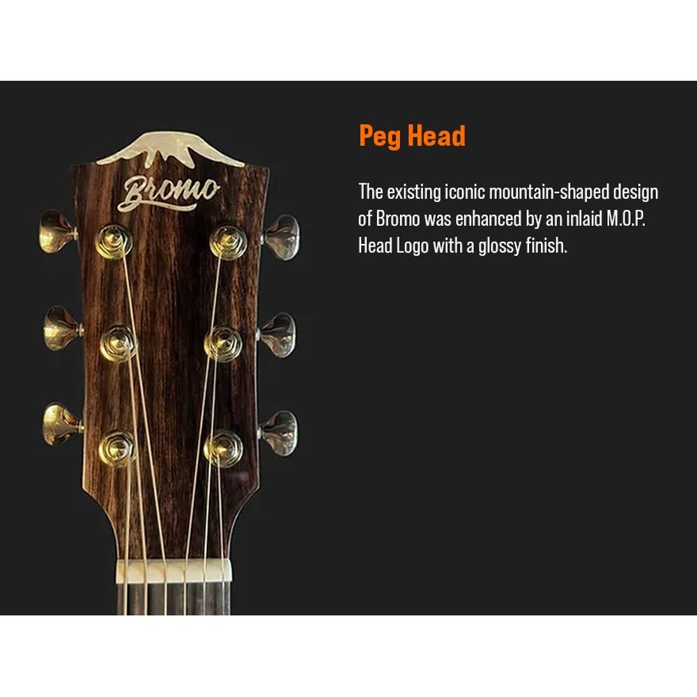 The Bromo BAN2CE Denali Series combines luxurious materials with refined craftsmanship, inspired by the majestic Denali Mountain Range. This cutaway auditorium guitar is designed for professional musicians seeking an instrument that both sounds and looks stunning.