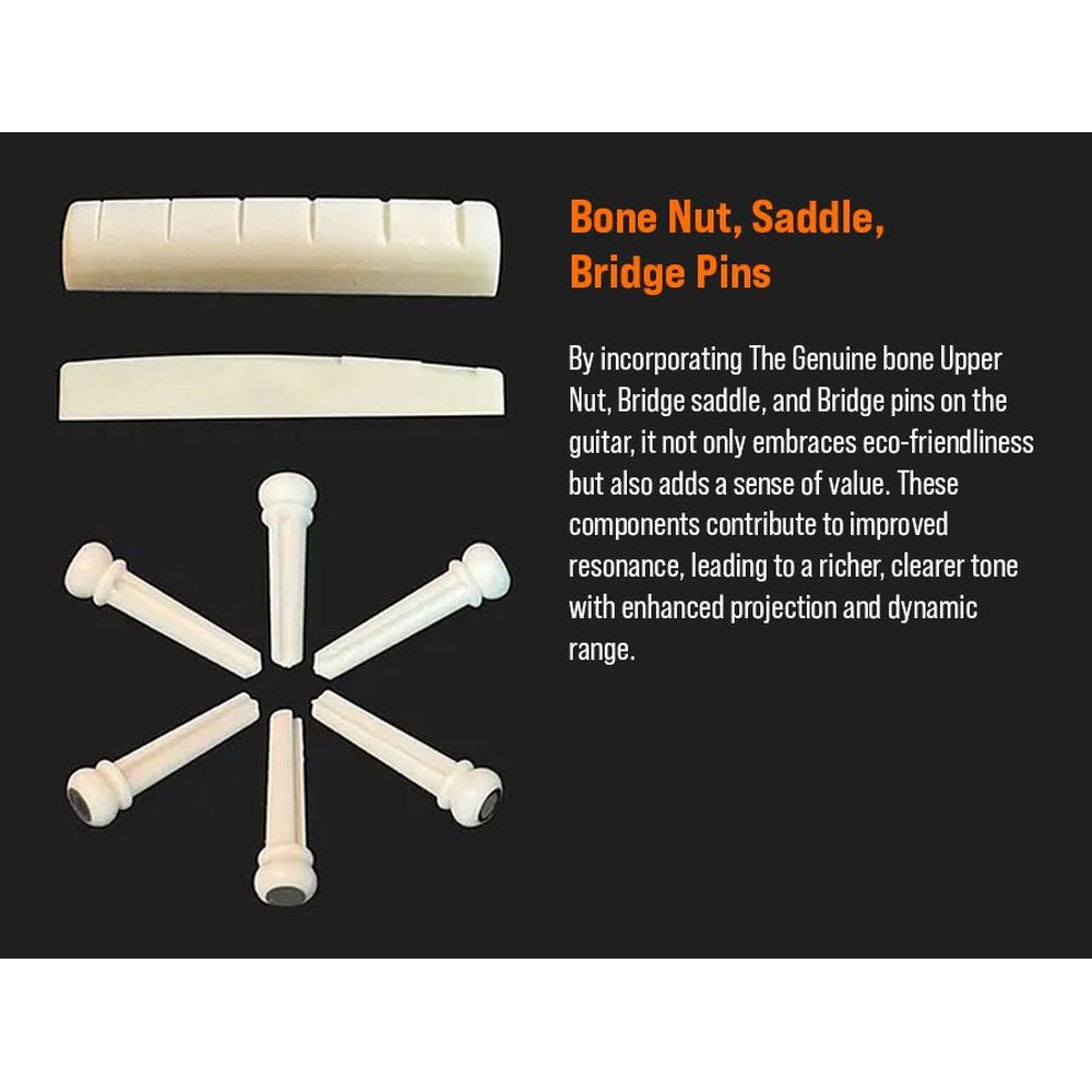 • Bridge pins: Ebony with "Eagle Eye" abalone dot