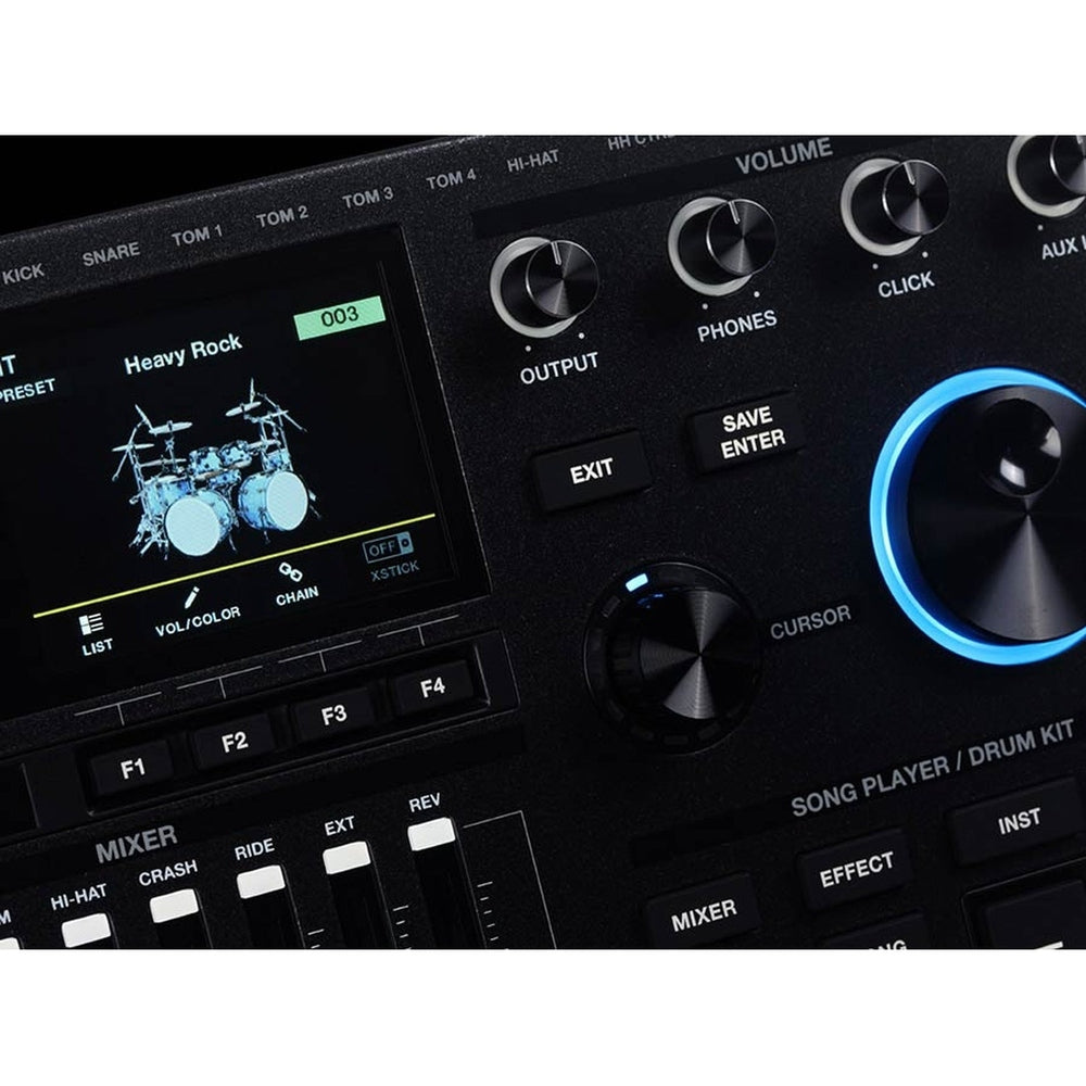 - Snare drum: 12" x 5" mesh head wood shell, 2-zone with position sensing