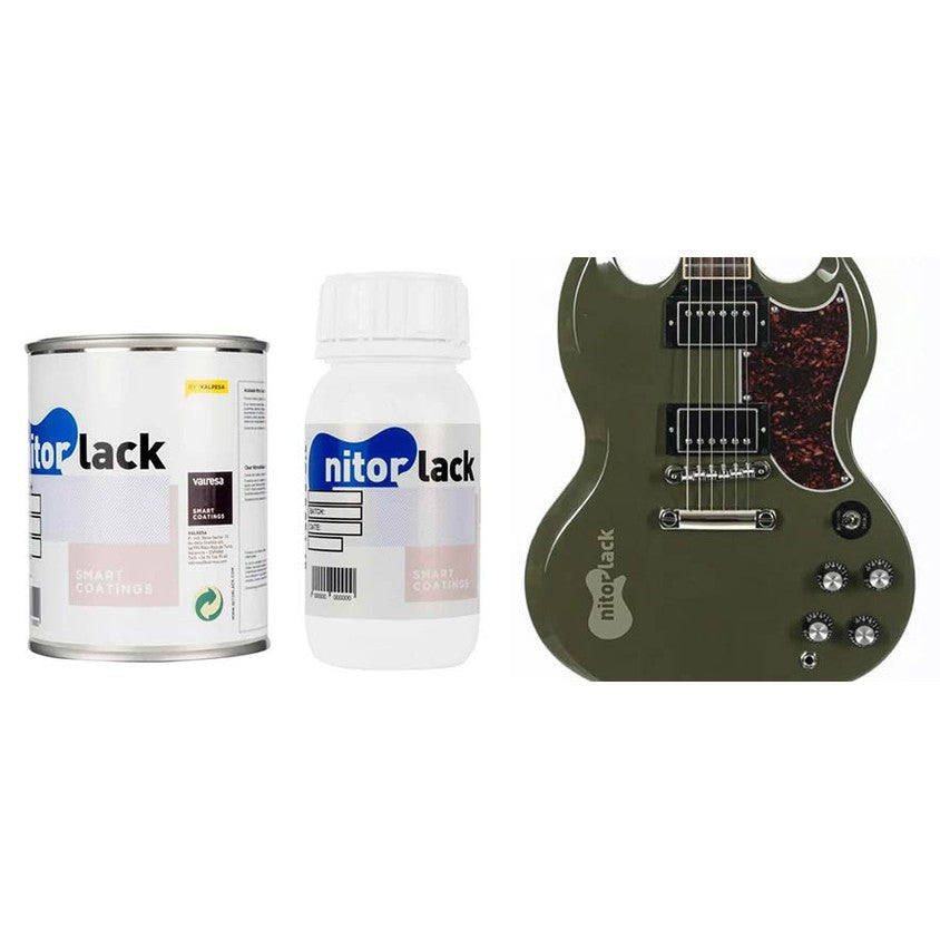 NitorLACK N167060108 is a dual-coat polyurethane lacquer in Olive Drab , a muted, brownish-green hue with a rich historical background. This color, familiar from military applications and World War II uniforms, originated in the 16th century as a designation for undyed wool. In the guitar world, Olive Drab offers a robust and unique look that can be either vintage or modern, depending on the finish.
