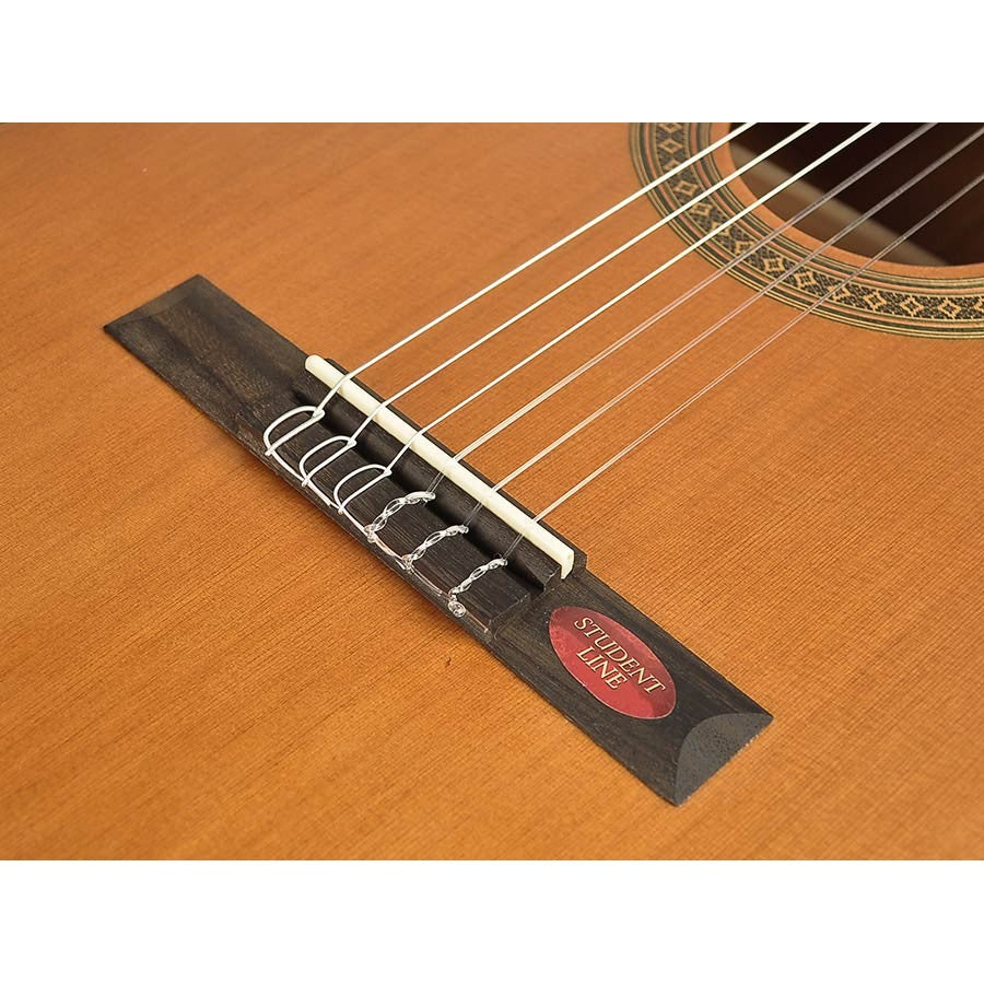 The Salvador Cortez CC-06-SN is a 7/8-size classical guitar from the Student Series, designed for players seeking a more compact model without sacrificing tone quality. With a 628 mm scale length and a 50 mm nut width, this Señorita model is ideal for players with shorter arms or smaller hands. Despite its more compact design, the guitar retains a full tone thanks to its standard body size.