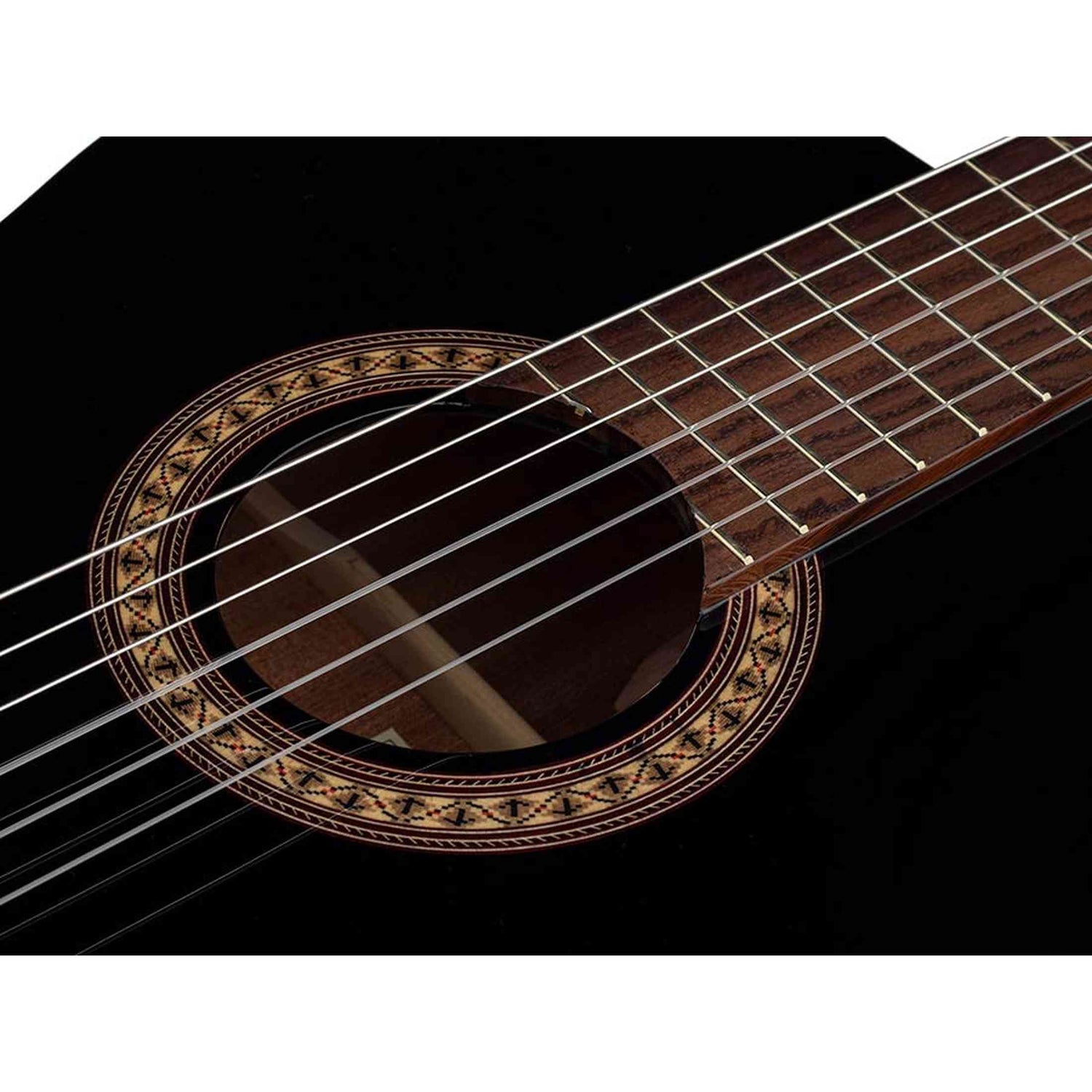 The CC-22-BK features an adjustable truss rod for easy neck adjustment, ensuring a durable and stable playing experience. Quality details like a genuine bone nut and bridge, a rosewood fingerboard, and Savarez Corum strings make this instrument a reliable choice for the serious beginner with an eye for style and tone.
