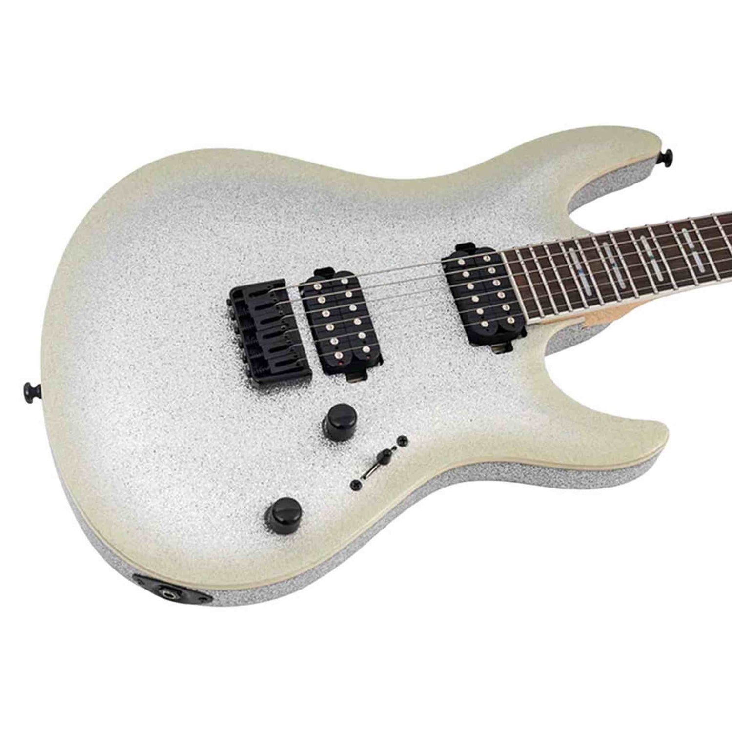 The Sire Y5/SPS Larry Carlton is a modern rock guitar with a lightweight alder body and a striking Silver Sparkle finish. The archtop design and three-piece hard maple neck with a reversed headstock give this 24-fret guitar not only an aggressive look but also a direct, full sound with extra low-end punch. This guitar is built for players who appreciate modern looks and powerful performance.