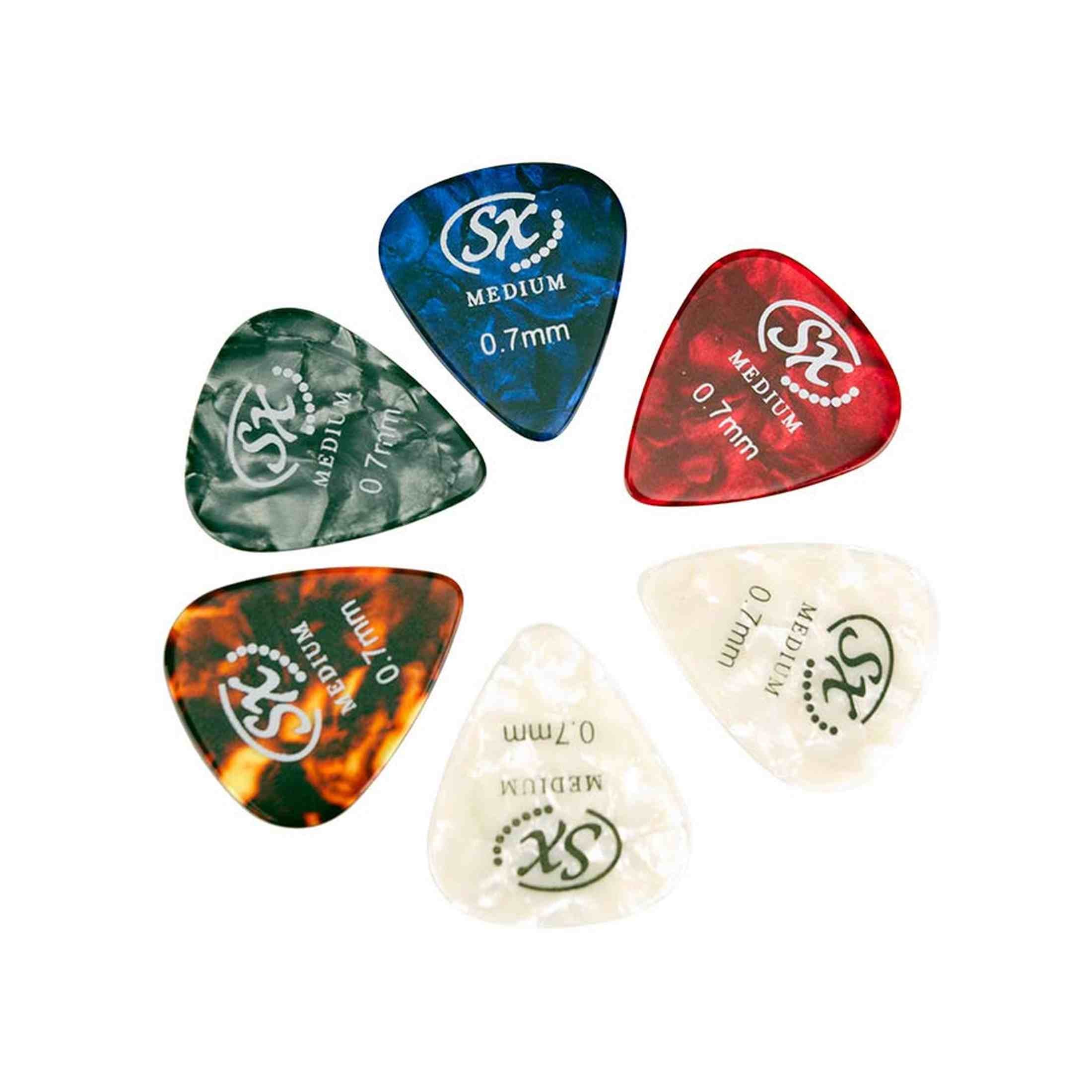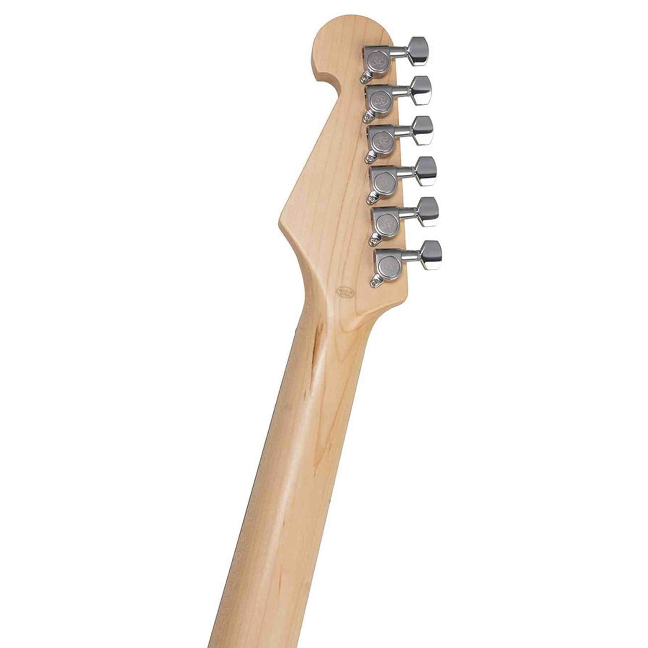 With the SX SE1HSS-SK-SGN, you can start playing right away. This complete ST guitar set includes a 4/4 electric guitar in Surf Green, a 10-watt amplifier, gig bag, strap, clip-on tuner, cable, and 6 picks. The basswood body has a comfortable contour and a double cutaway, allowing you to play comfortably whether standing or sitting, and easily reach all 22 frets.